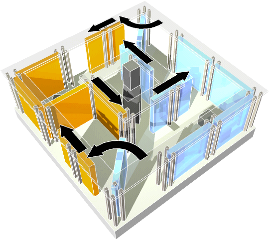 Concept for sliding and pivoting wall panels.